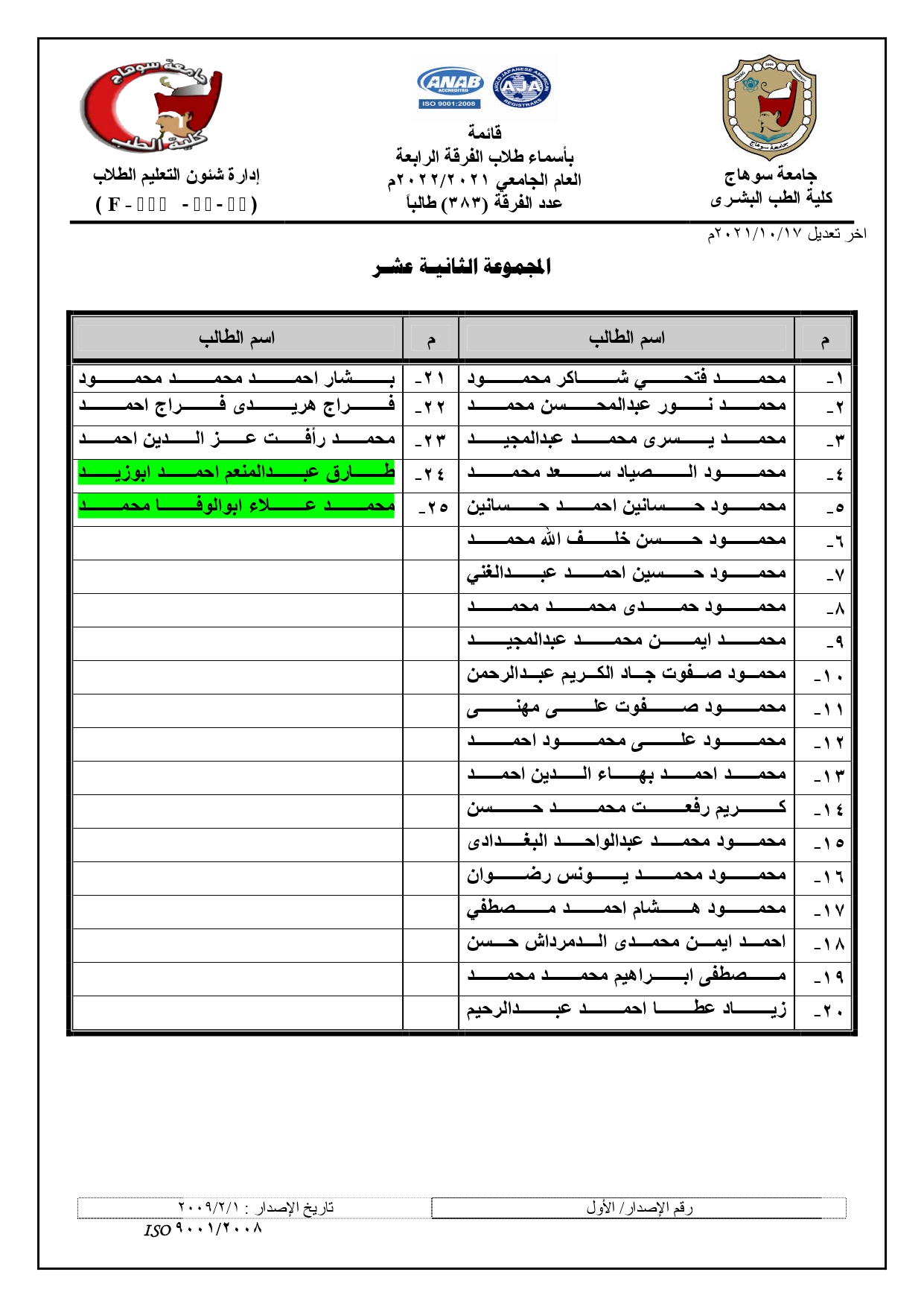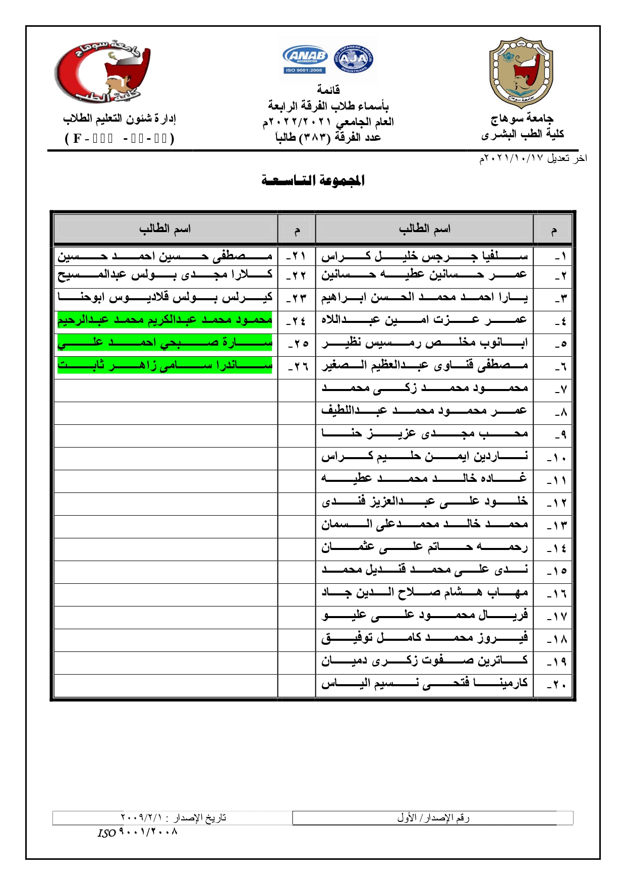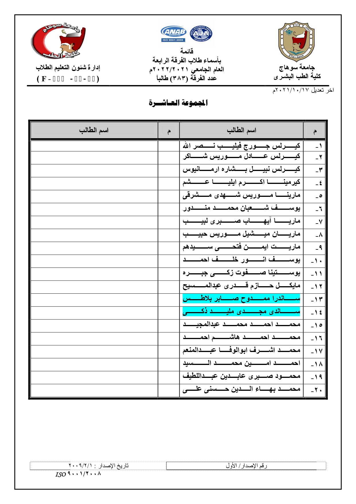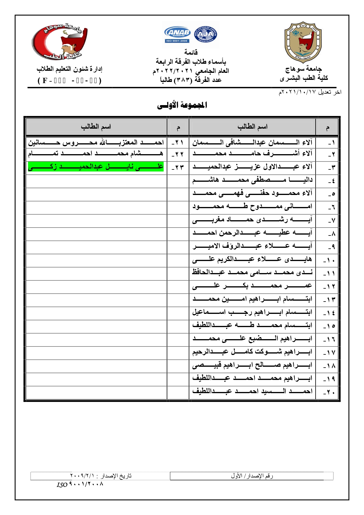 الرئيسية » Blog » قوائم مجموعات الفرقة الرابعة العام الجامعي 2021/2022