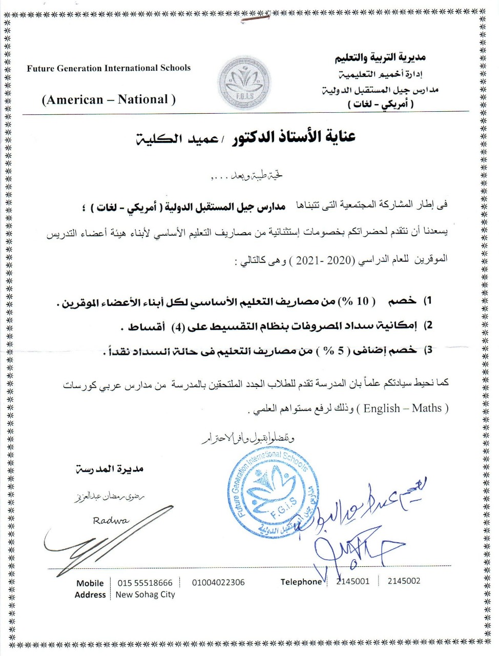 الرئيسية » Blog » مدارس جيل المستقبل الدولية تقدم خصم خاص لاعضاء هيئه التدريس بالكليةمدارس جيل المستقبل الدولية تقدم خصم خاص لاعضاء هيئه التدريس بالكليةby كلية الطب2020-07-08
