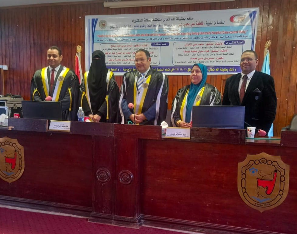 مناقشة رسالة الدكتوراه المقدمة من الطبيبة /فاطمه علي محمود علي _ مدرس مساعد بقسم الصحه العامه وطب المجتمع كلية الطب جامعه سوهاج