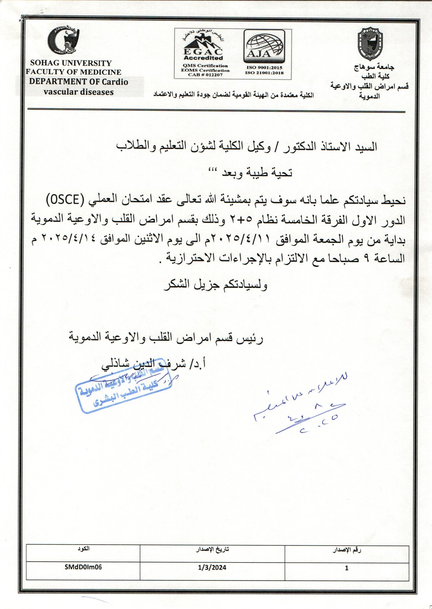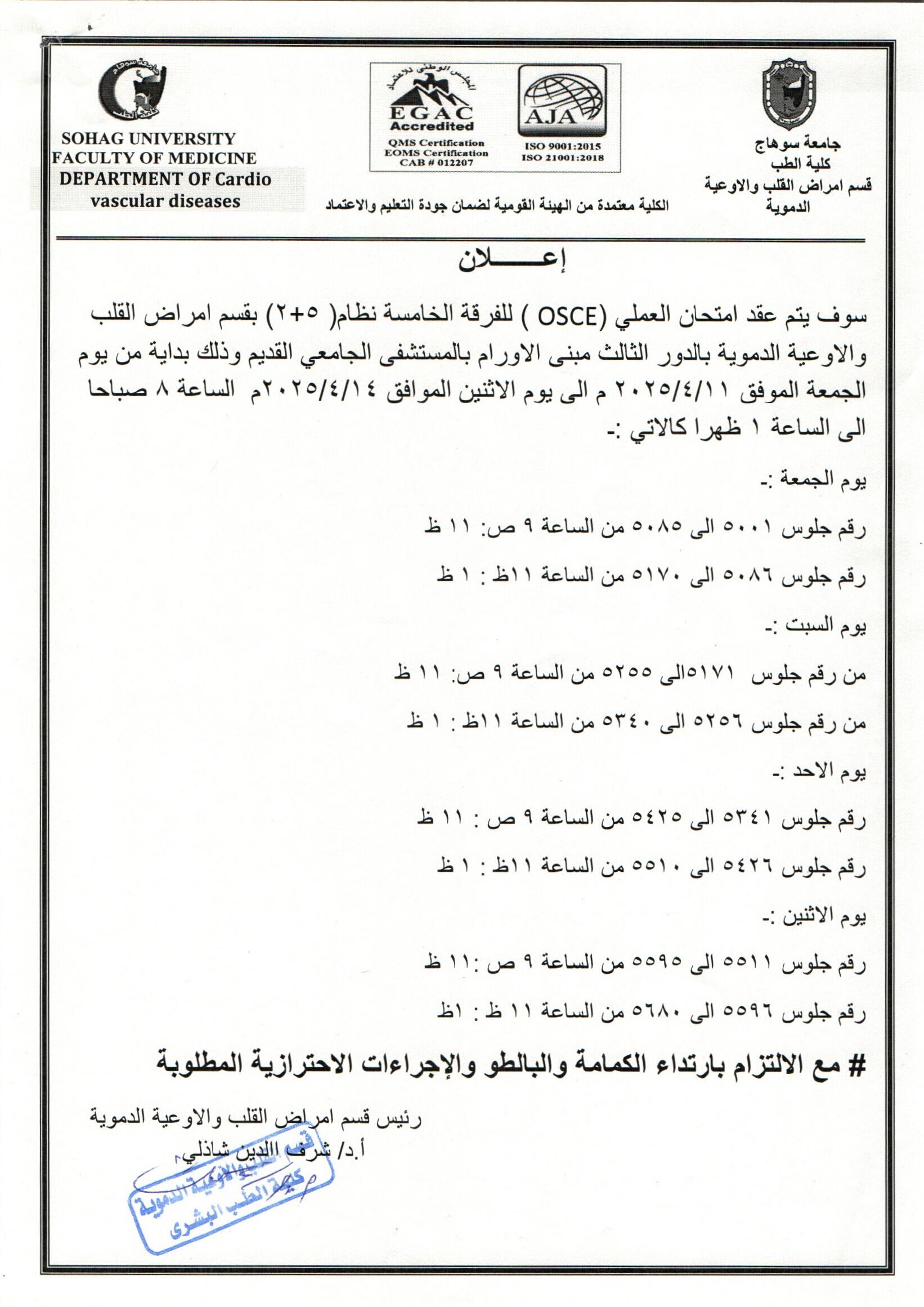 الرئيسية » Blog » موعد امتحان OSCE امراض القلب والاوعية الدموية 2024/2025موعد امتحان OSCE امراض القلب والاوعية الدموية 2024/2025by كلية الطب2025-04-08