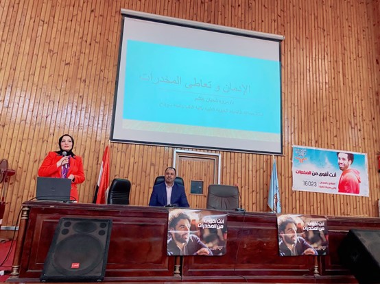 نظمت جامعه سوهاج كلية الطب البشري ندوه عن الادمان عائق امام التنمية المستدامة تناولت الندوة مفهوم التنمية المستدامة والابعاد الثلاثية للتنمية المستدامة وعلاقتها بالإدمان وتعاطي المواد المخدرة وتناولت ايضا الندوة مفهوم الادمان وأسبابه والتحديات والحلول بحضور عدد(400) طالب وطالبة بقاعة المؤتمرات الكبرى