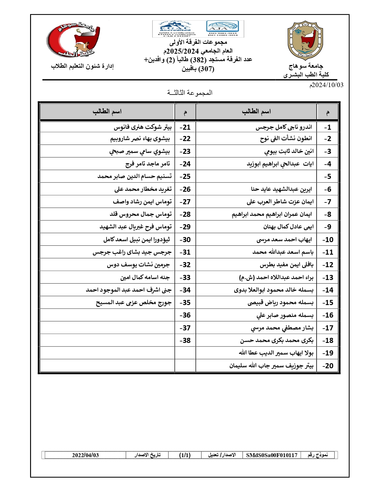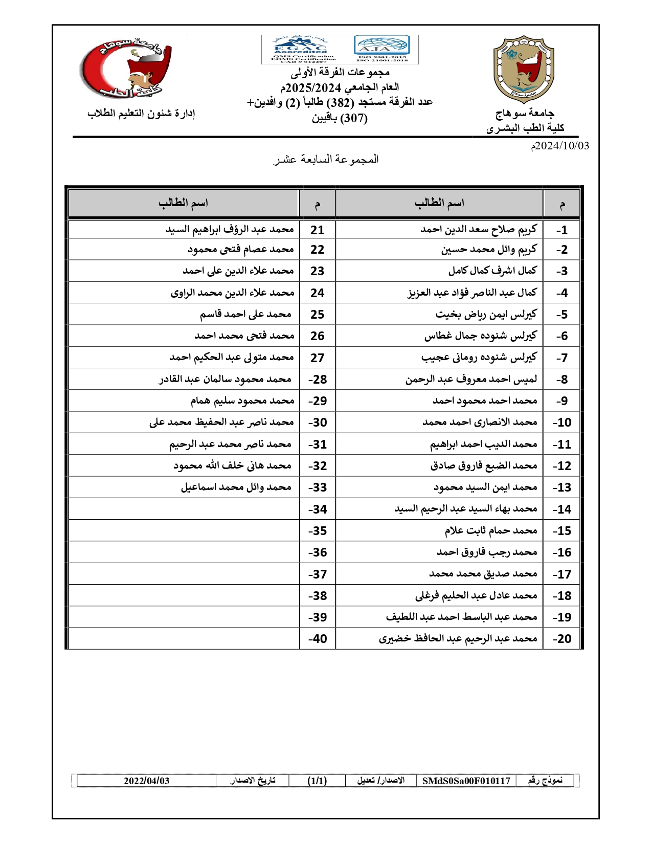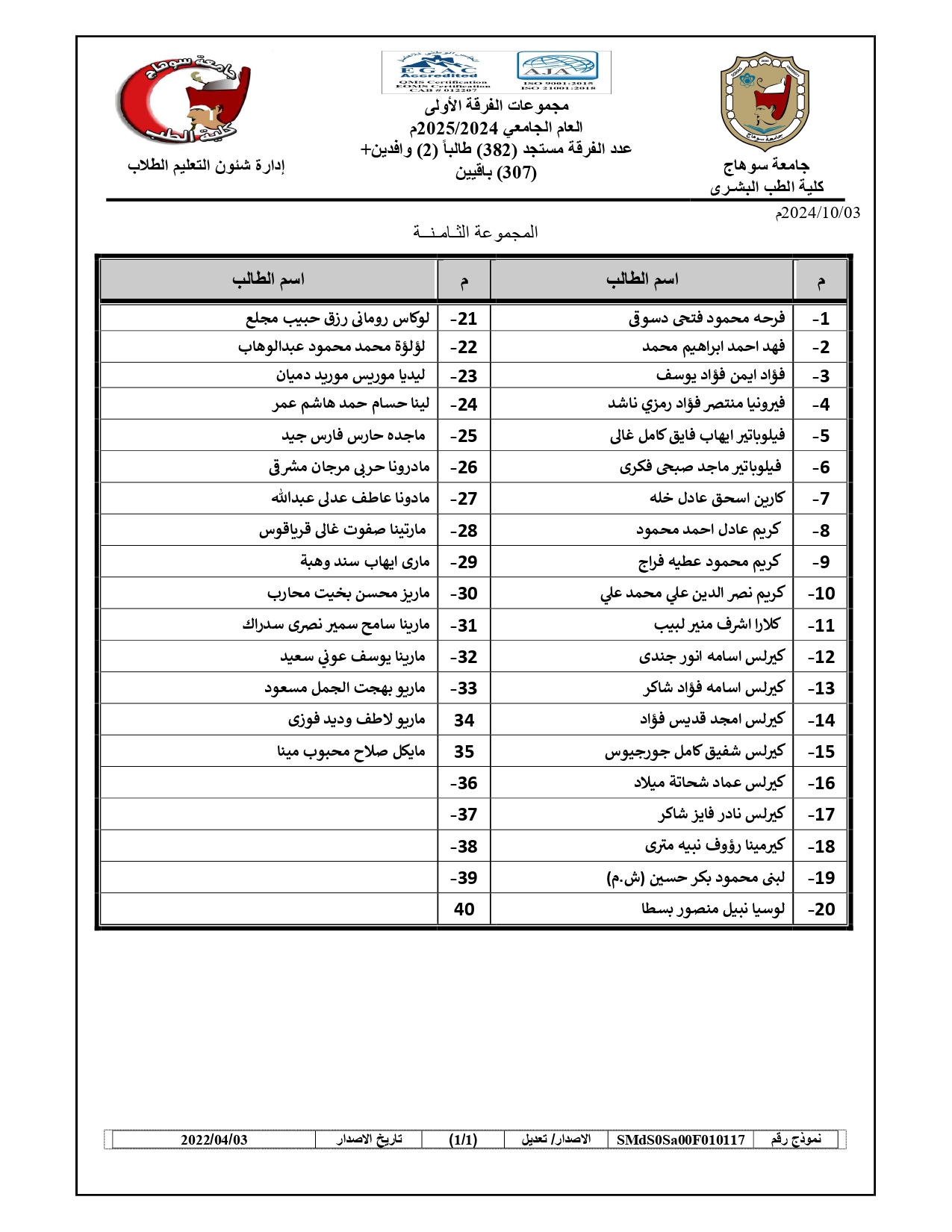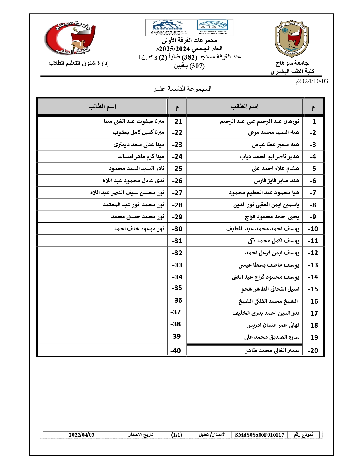 الرئيسية » Blog » مجموعات طلاب الفرقة الاولى العام الجامعي 2024/2025 ممجموعات طلاب الفرقة الاولى العام الجامعي 2024/2025 مby كلية الطب2024-10-042024-10-04