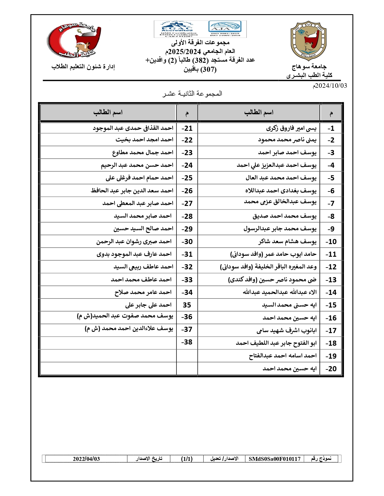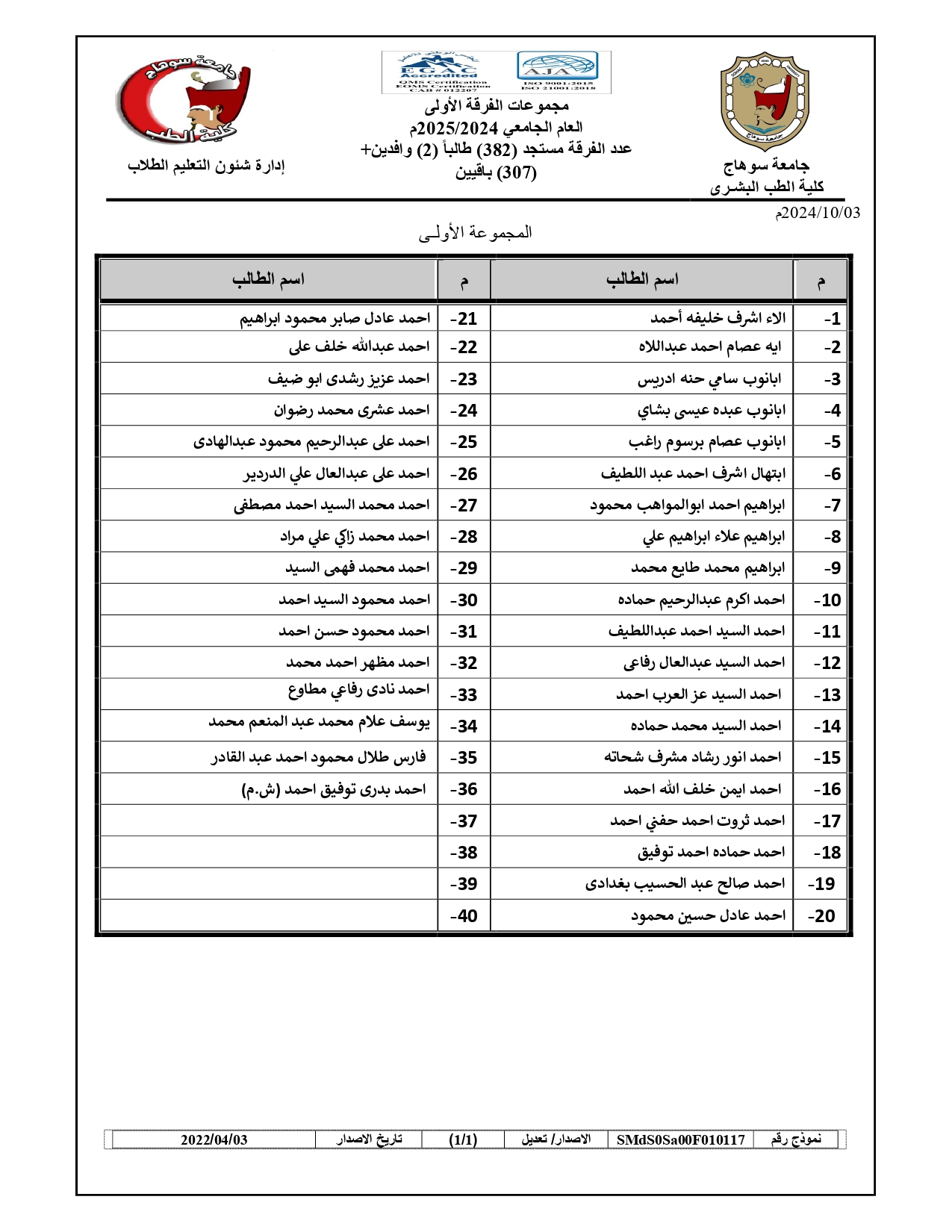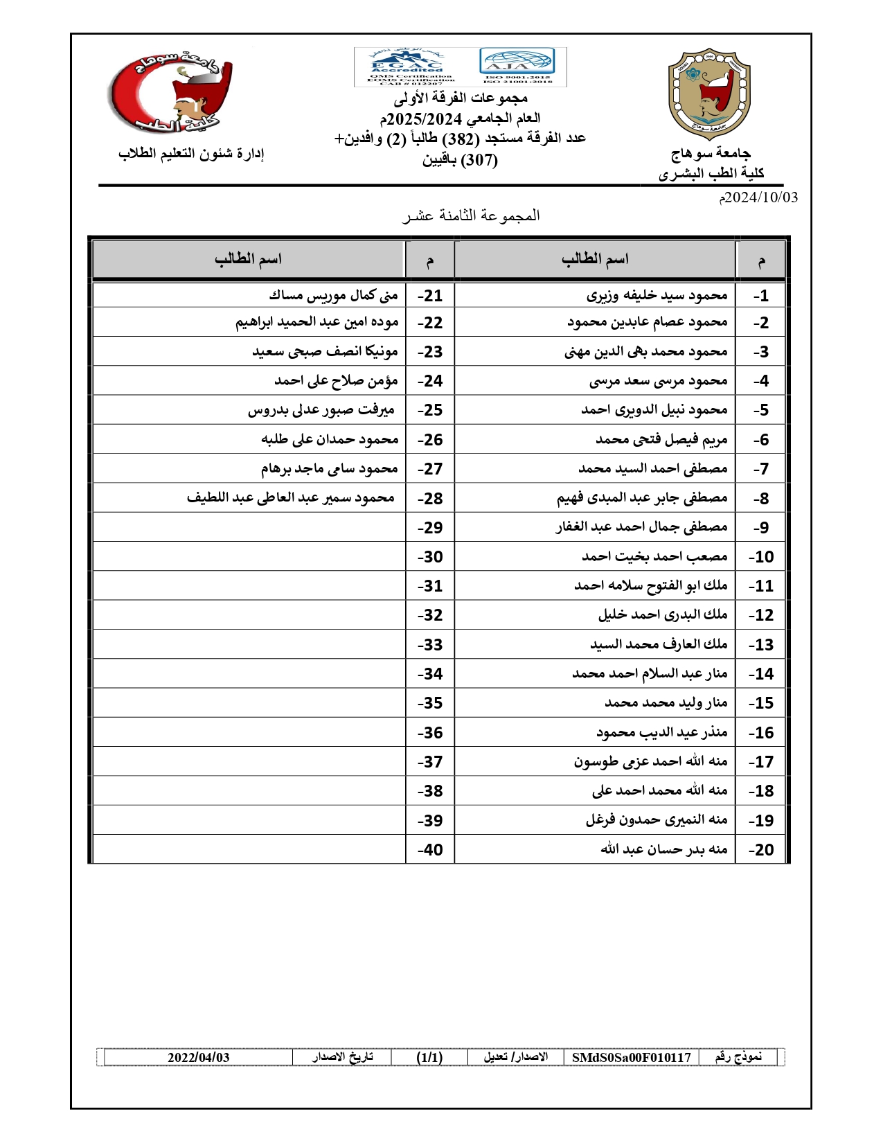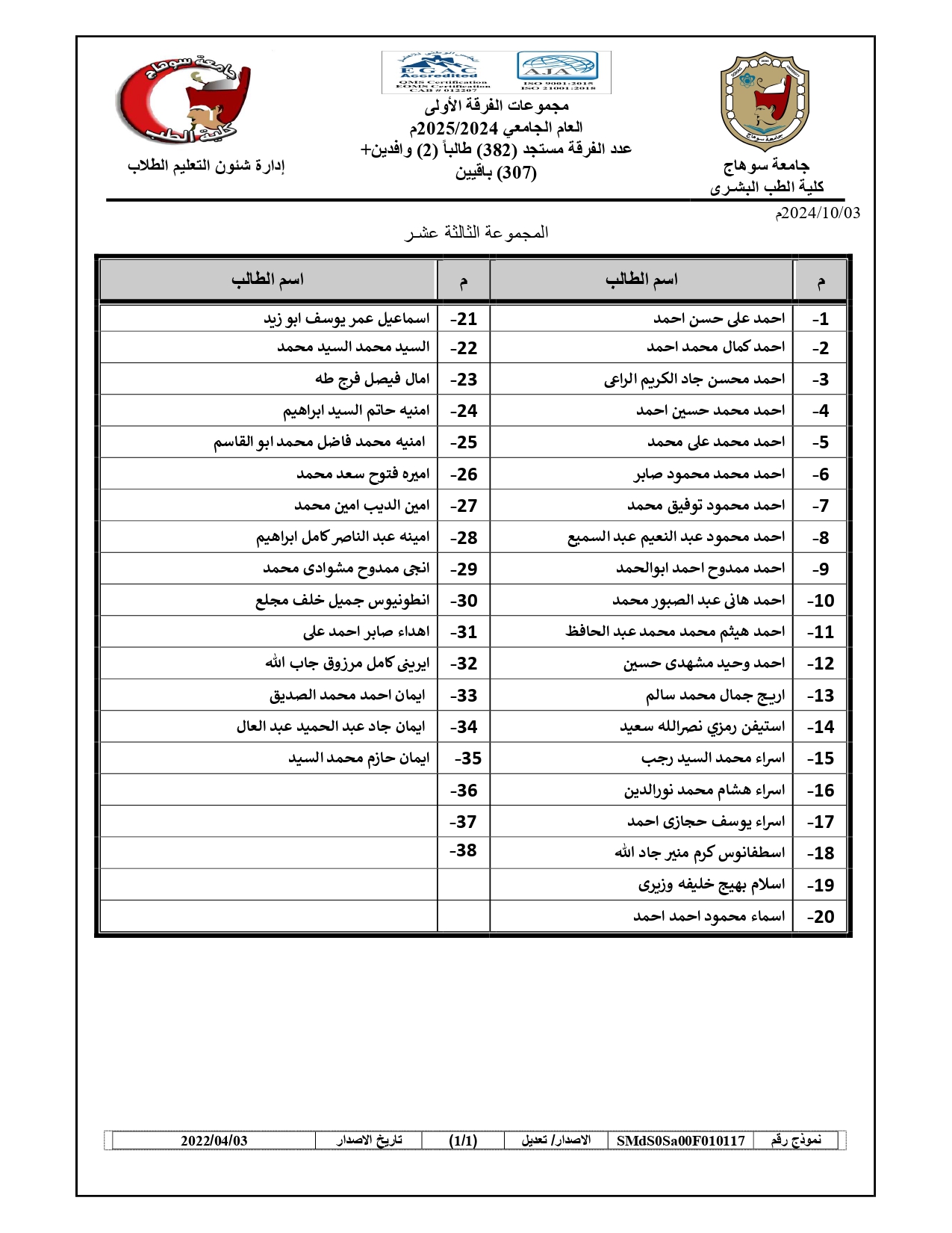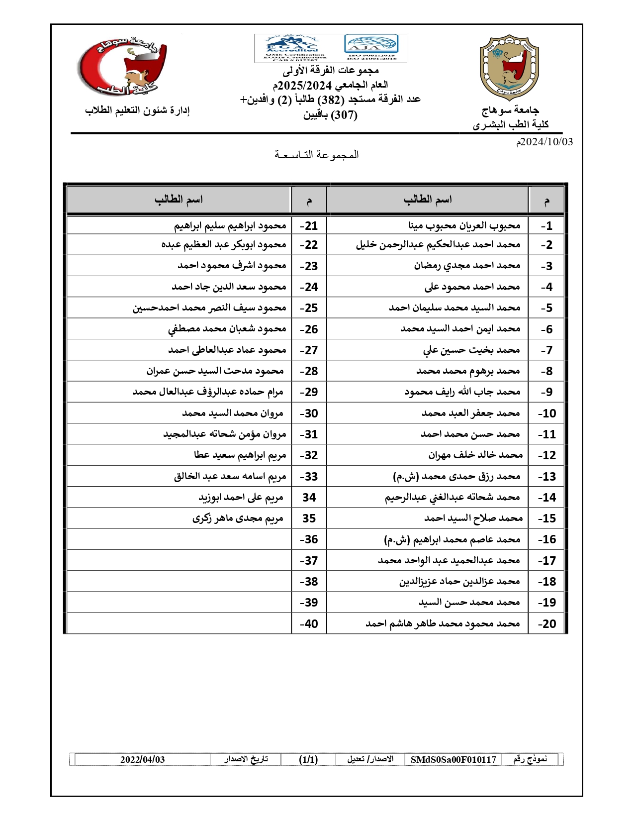 الرئيسية » Blog » مجموعات طلاب الفرقة الاولى العام الجامعي 2024/2025 ممجموعات طلاب الفرقة الاولى العام الجامعي 2024/2025 مby كلية الطب2024-10-042024-10-04