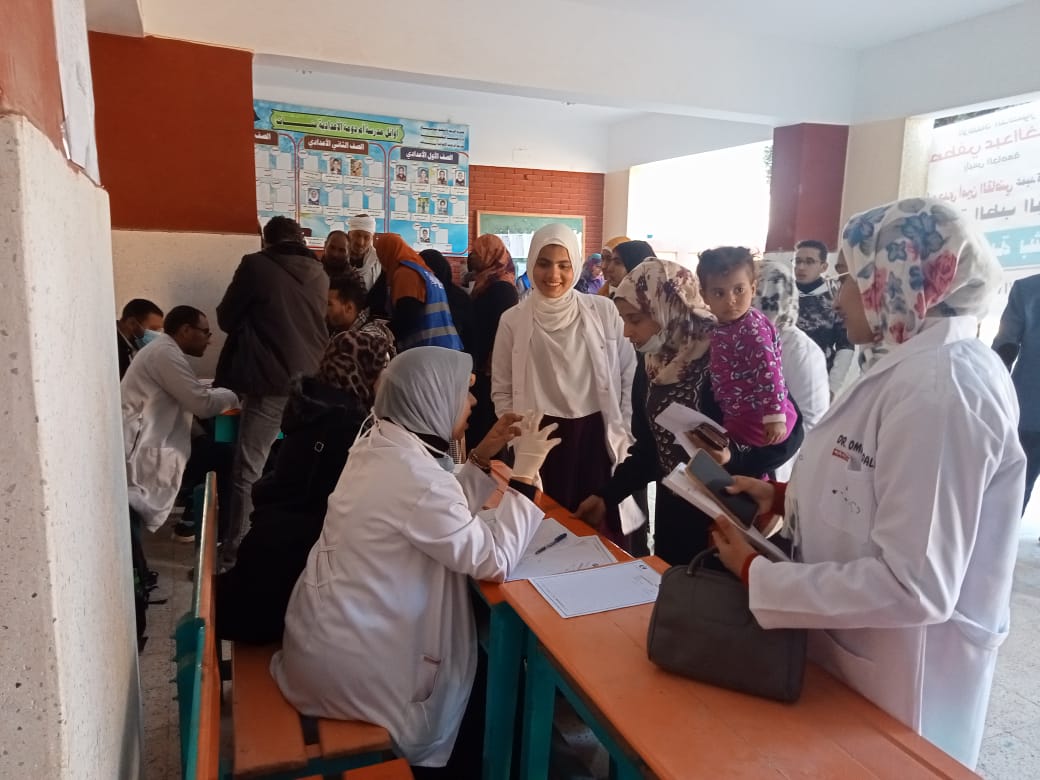 وقد تم مناظرة ٥١٣ مريضا بمختلف التخصصات وصرف العلاج اللازم لهم بالمجان ، كما تم تحويل عدد ٢٤ حالة اخري الي المستشفي الجامعي حيث تتطلب حالاتهم فحوصات وتدخلات جراحية .