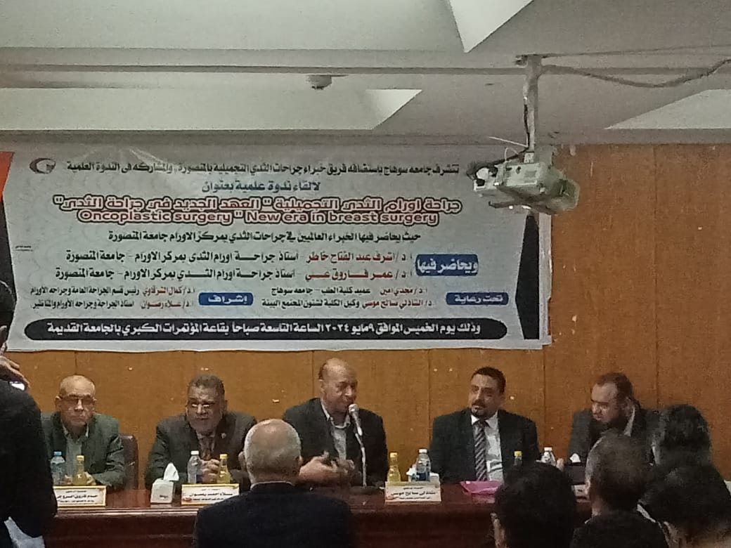 أقيم اليوم الخميس ٩/ ٥/ ٢٠٢٤م ندوة علمية بعنوان ” جراحة أورام الثدي التجميلية ” والتي حاضر فيها فريق من خبراء جراحات الثدي بجامعة المنصورة : –