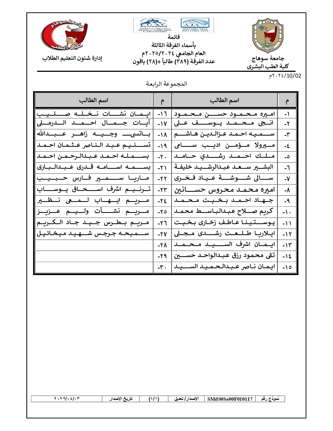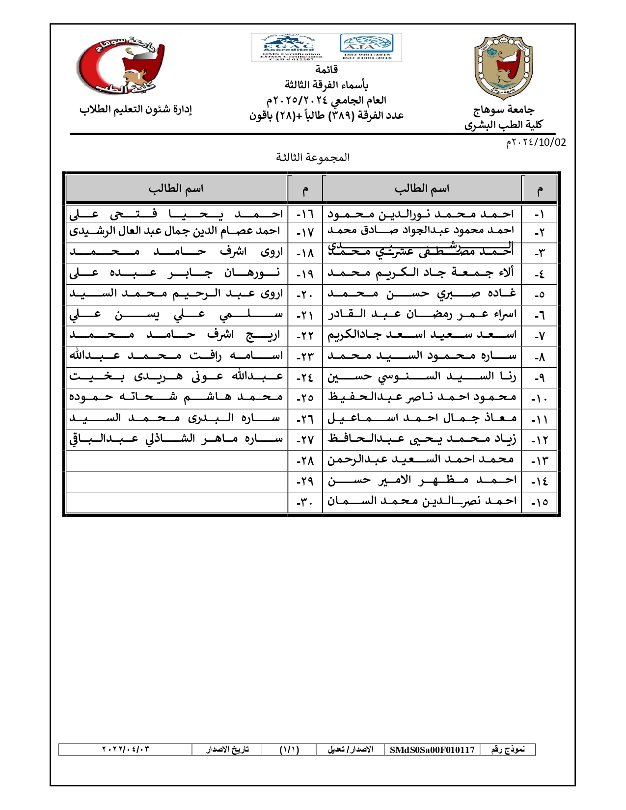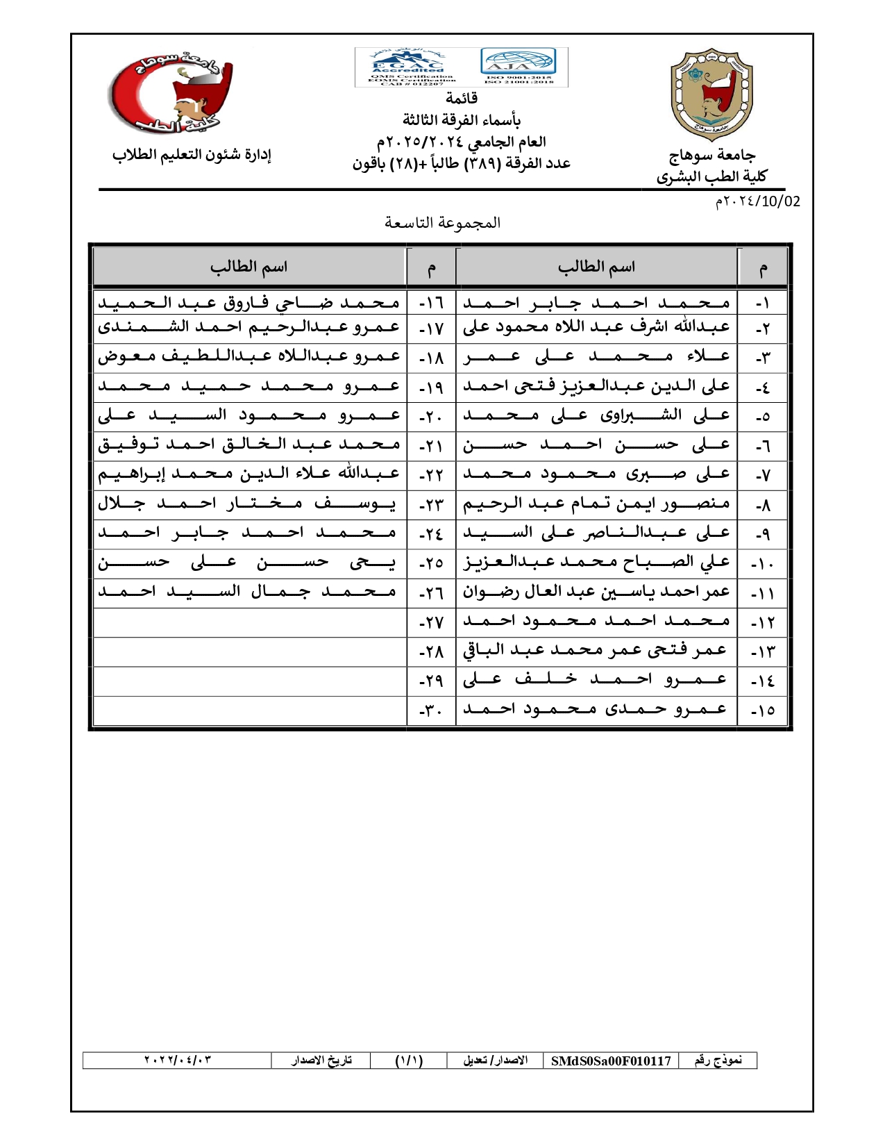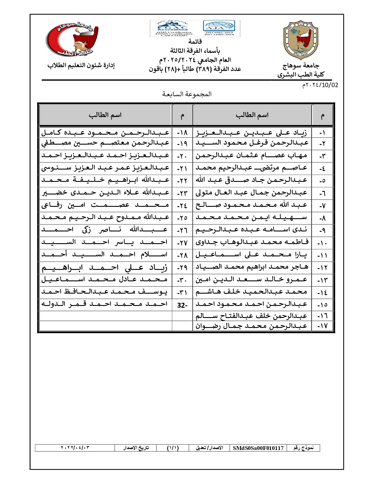 الرئيسية » Blog » قوائم مجموعات طلاب الفرقة الثالثة العام الجامعي 2024/2025قوائم مجموعات طلاب الفرقة الثالثة العام الجامعي 2024/2025by كلية الطب2024-09-272024-10-04