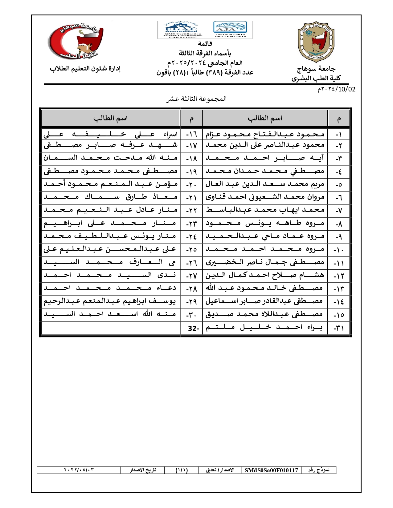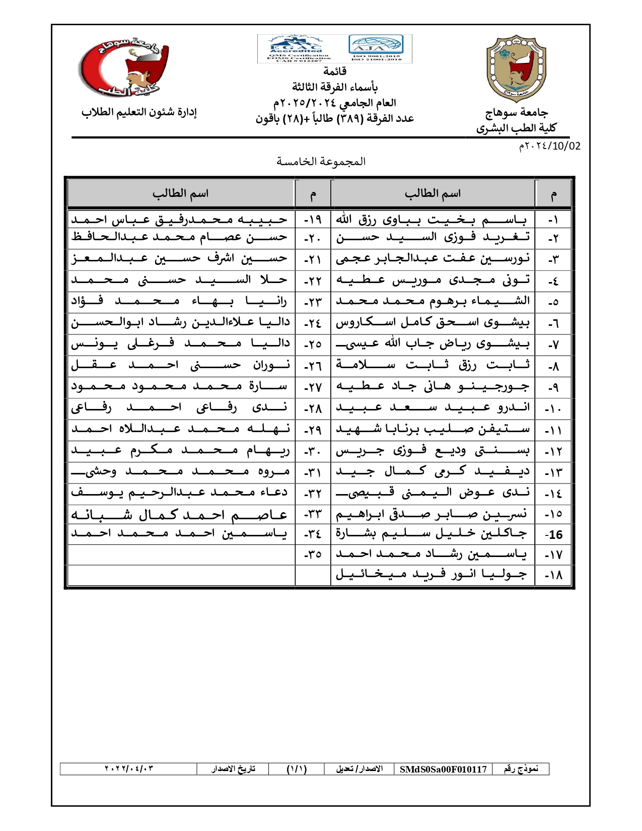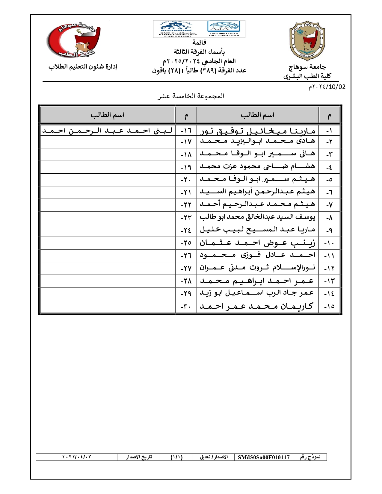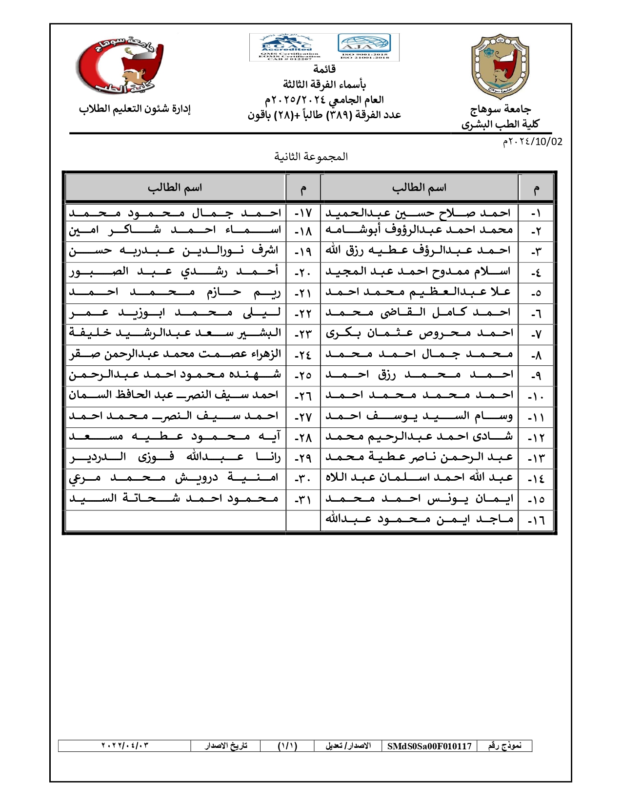 الرئيسية » Blog » قوائم مجموعات طلاب الفرقة الثالثة العام الجامعي 2024/2025قوائم مجموعات طلاب الفرقة الثالثة العام الجامعي 2024/2025by كلية الطب2024-09-272024-10-04