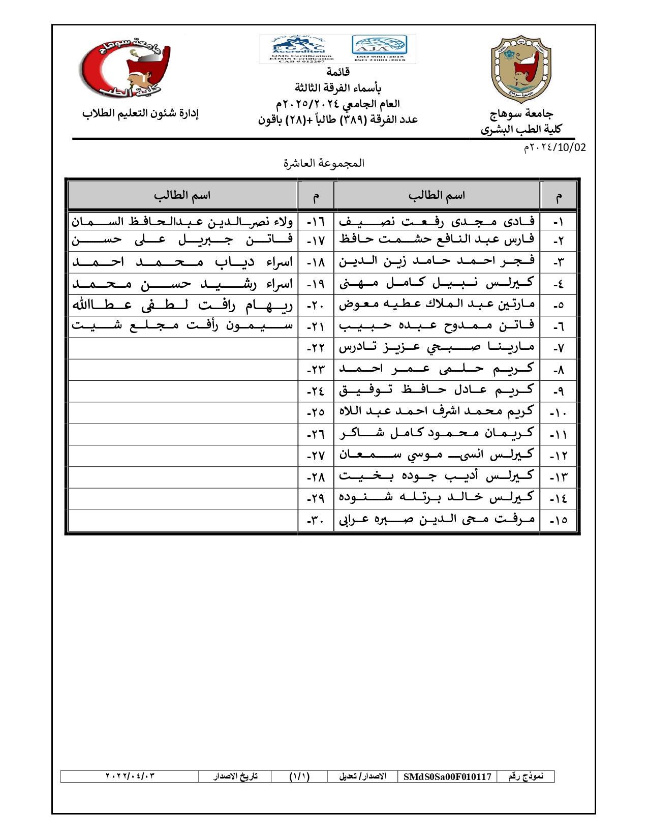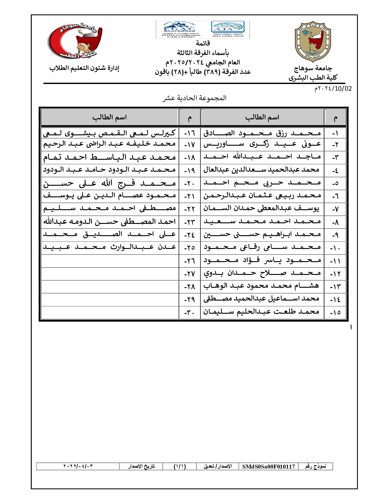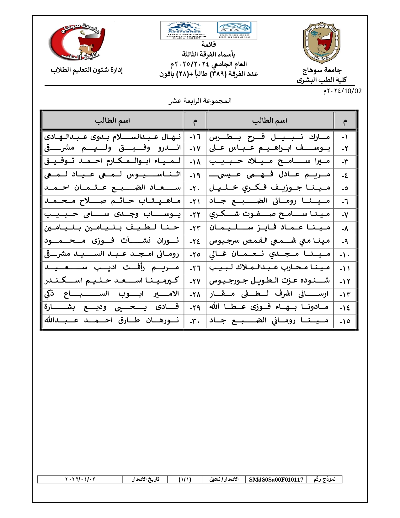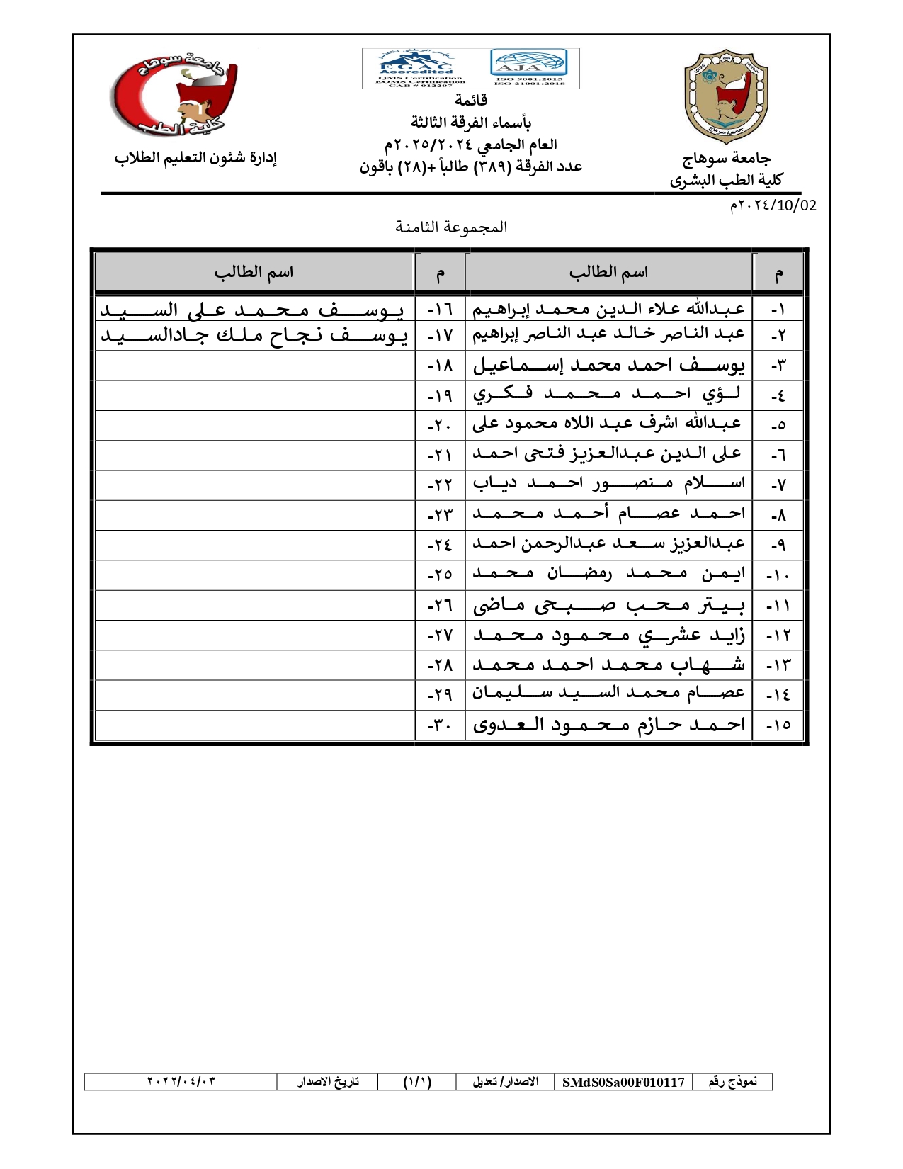 الرئيسية » Blog » قوائم مجموعات طلاب الفرقة الثالثة العام الجامعي 2024/2025قوائم مجموعات طلاب الفرقة الثالثة العام الجامعي 2024/2025by كلية الطب2024-09-272024-10-04