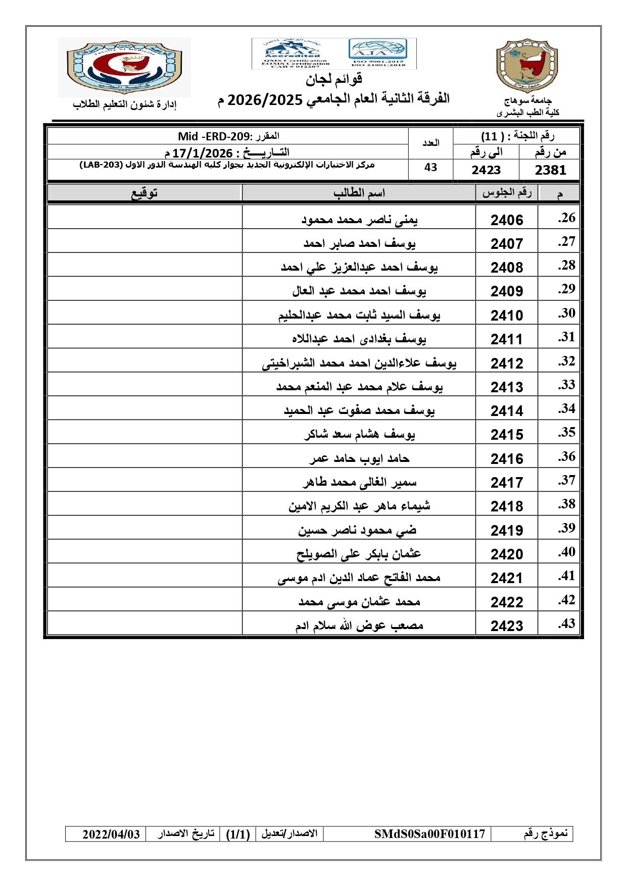 الرئيسية » Blog » قوائم لجان الفرقة الثانية الفصل الدراسي الاول العام الجامعي 2025/2026قوائم لجان الفرقة الثانية الفصل الدراسي الاول العام الجامعي 2025/2026by IT Unit2026-01-162026-01-16