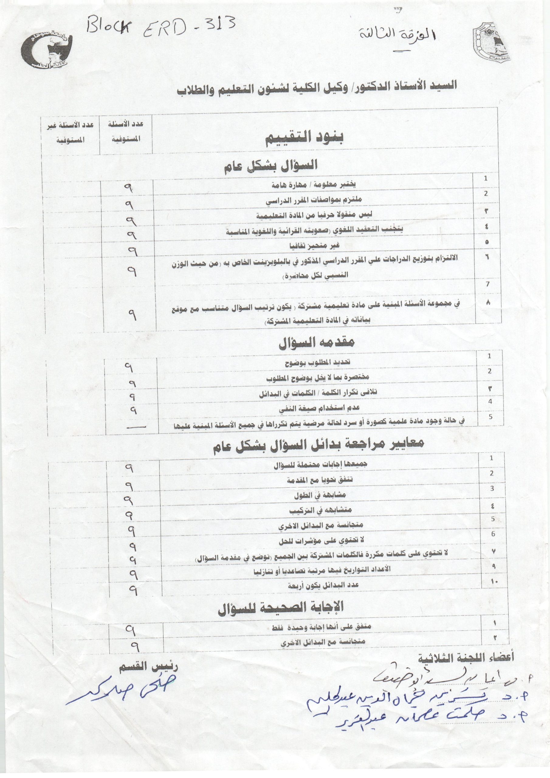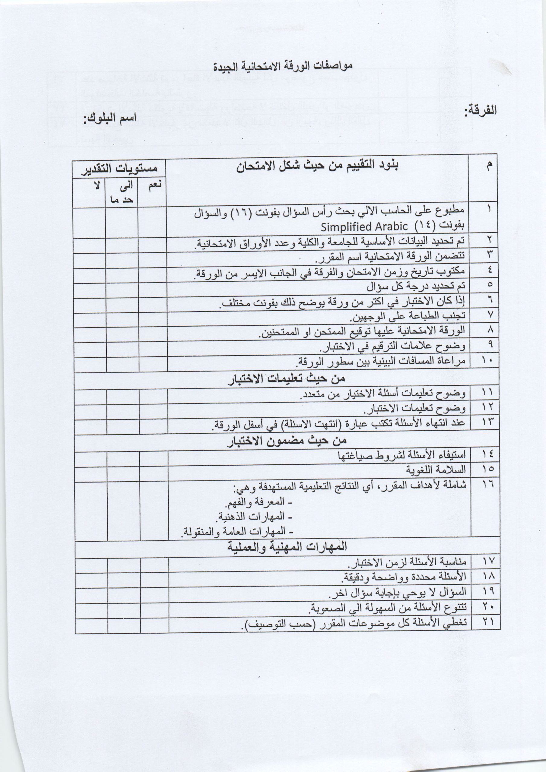 بناء بنوك أسئلة في التخصصات المختلفة ، وإدراجها ضمن قواعد بيانات الكلية ،وتحديثها من آن إلي آخر طبقا للمعايير.