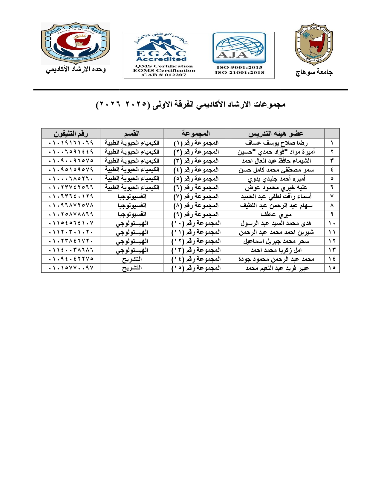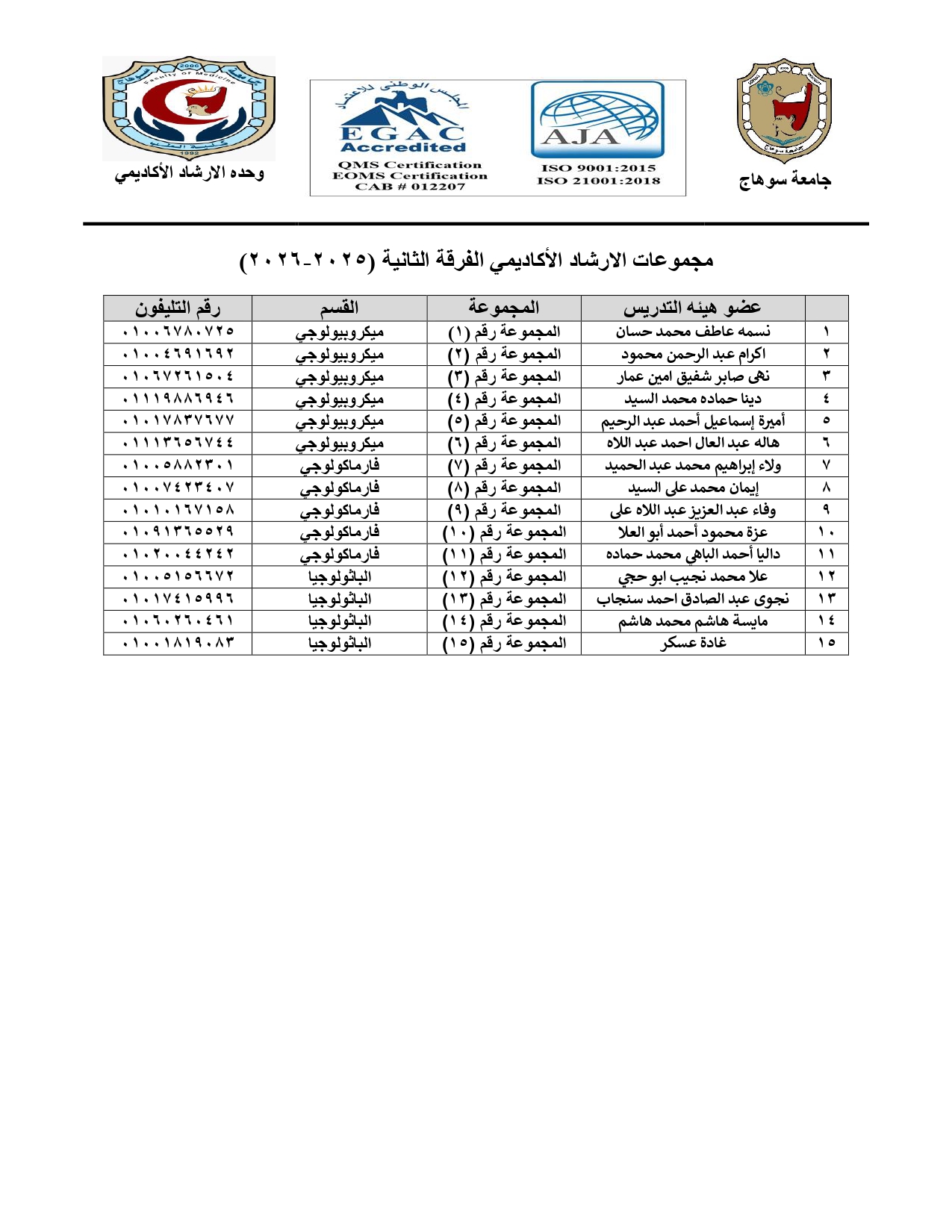 الرئيسية » Blog » توزيع مجموعات الارشاد الاكاديمي العام الجامعي 2025/2026توزيع مجموعات الارشاد الاكاديمي العام الجامعي 2025/2026by كلية الطب2025-10-212025-10-21