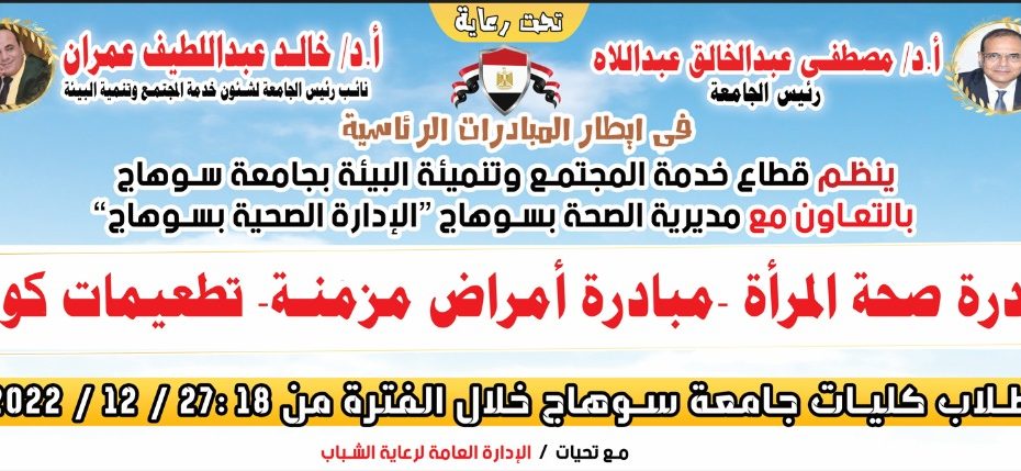 جامعة سوهاج تطلق مبادرات صحة المرأة واكتشاف الأمراض المزمنة وتطعيمات كورونا بالتعاون مع مديرية الصحة