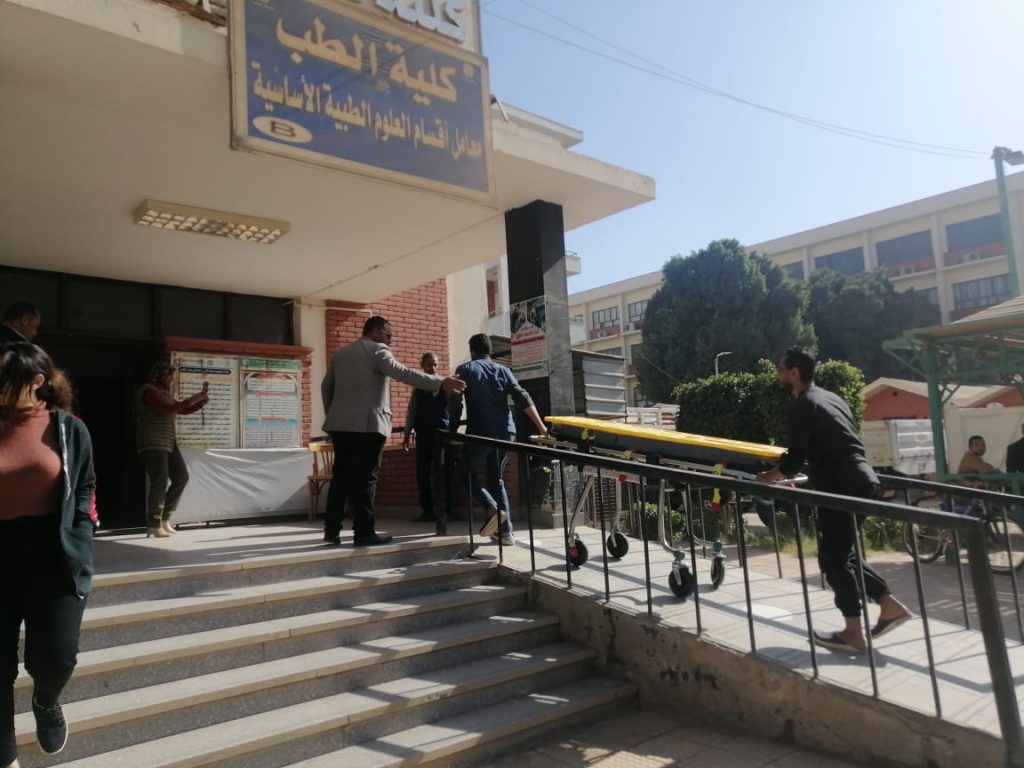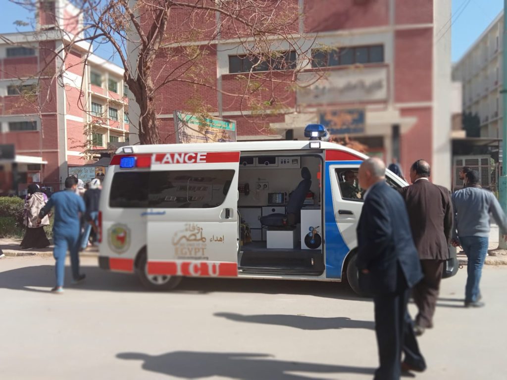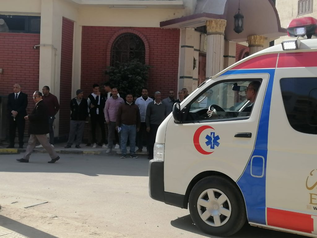 وقامت سيارة الاسعاف بنقل واسعاف احد العمال الذي قام بدور المصاب ،