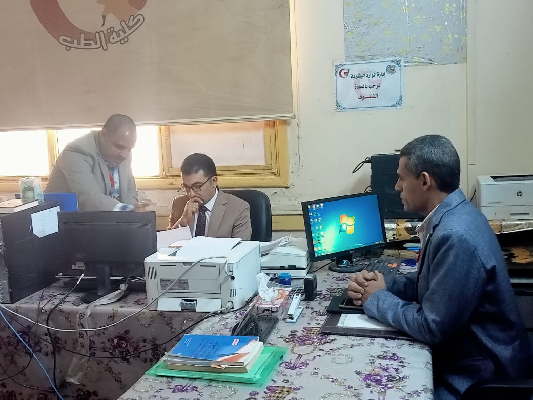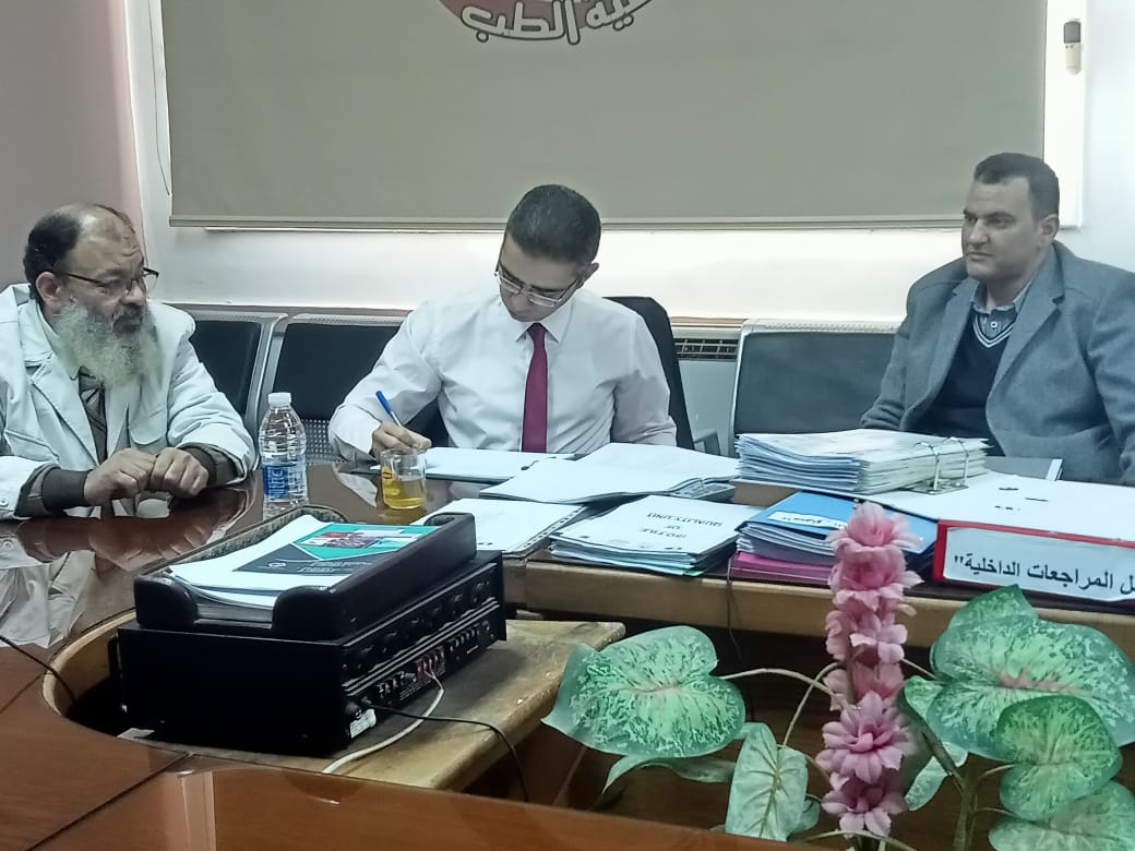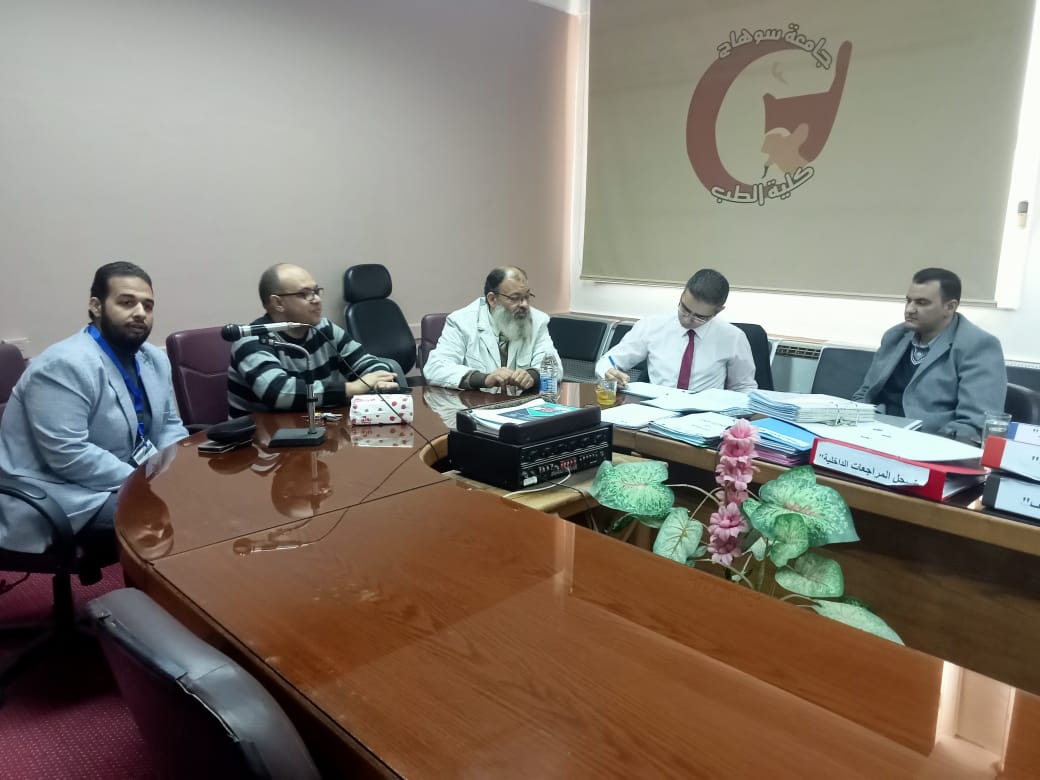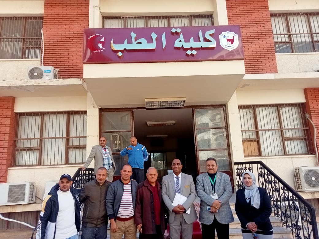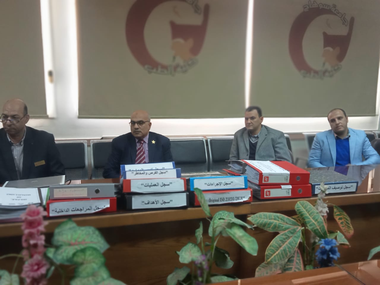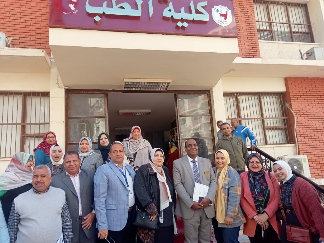 The ISO committee visited the Faculty of Human Medicine at Sohag University today, Sunday, corresponding to 24/12/2023. The committee was received by Prof. Dr. Magdy Amin Al-Qadi, Dean of the Faculty of Human Medicine, in the presence of: – Prof. Dr. Salah Rashidi, the college’s agent for postgraduate studies and research. Prof. Dr. Shazli Saleh Moussa, the college’s agent for community service and environmental development affairs. Prof. Dr. Mohamed Nasr, the college’s agent for education and student affairs. Prof. Dr. Ahmed Mustafa, Director of the Quality Assurance Unit at the College. And a group of distinguished professors, members of the faculty. Dr. Magdy welcomed the visitors and the attendees, then the committee began its work and headed to the Human Resources Department, where it was introduced to: –