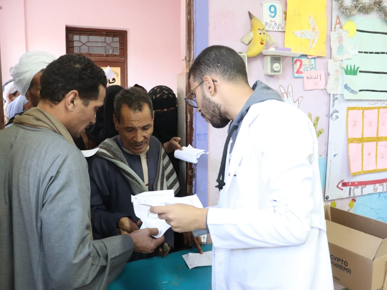 Under the patronage of His Excellency President Abdel Fattah El-Sisi, and His Excellency Dr. Hassan Al-Namani, President of the University, and Dr. Khaled Abdel Latif Omran, Vice President of the University for Community Service and Environmental Development, and under the supervision of Dr. Magdy Amin Al-Qadi, Dean of the Faculty of Medicine, and Dr. Shazly Saleh Mousi, Vice Dean of the Faculty for Community Service and Environmental Development, the Faculty of Medicine (Community Service and Environmental Development Sector) organized a medical convoy to the village of Bilabish, Dar Al-Salam Center in Sohag, in cooperation with the Hayat Karima Foundation, which is sponsored by His Excellency President Abdel Fattah El-Sisi, President of the Republic. These medical convoys come due to the social responsibility that Sohag University bears to help the residents of the most needy villages in the governorate, which cannot afford the costs of examination and treatment.