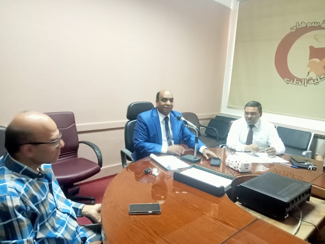 Upon the invitation of Mr. Prof. Dr. Magdy Amin Al-Qadi, Dean of the Faculty of Human Medicine and Chairman of the Board of Directors of University Hospitals, a meeting of the Board of Directors of University Hospitals No. (167) was held today, Sunday, corresponding to 2023/10/22. The meeting was attended by Prof. Dr. Ahmed Fathi Al-Nahas, the Executive Director of University Hospitals and the College’s Agent for Community Service and Environmental Development Affairs, the hospital’s deputies, a group of department heads and faculty members. The meeting focused on several important topics.