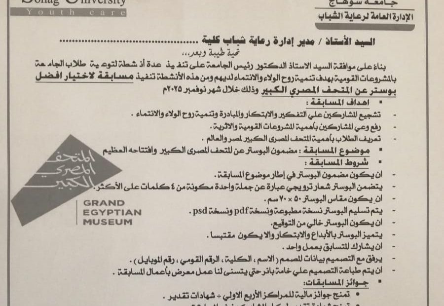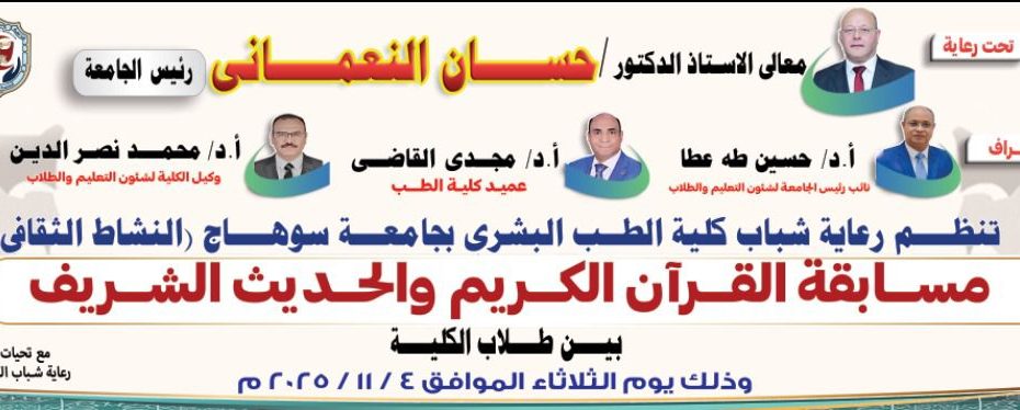 زياره مدرسه الشيماء الثانوية بنات يوم الاربعاء 5/11/2025م وضمن انشطه قطاع خدمه المجتمع وتنميه البيئة بكليه الطب  جامعه بسوهاج تحت رعاية فخامه الرئيس / عبد… Read More »زياره مدرسه الشيماء الثانوية بنات يوم الاربعاء 5/11/2025م